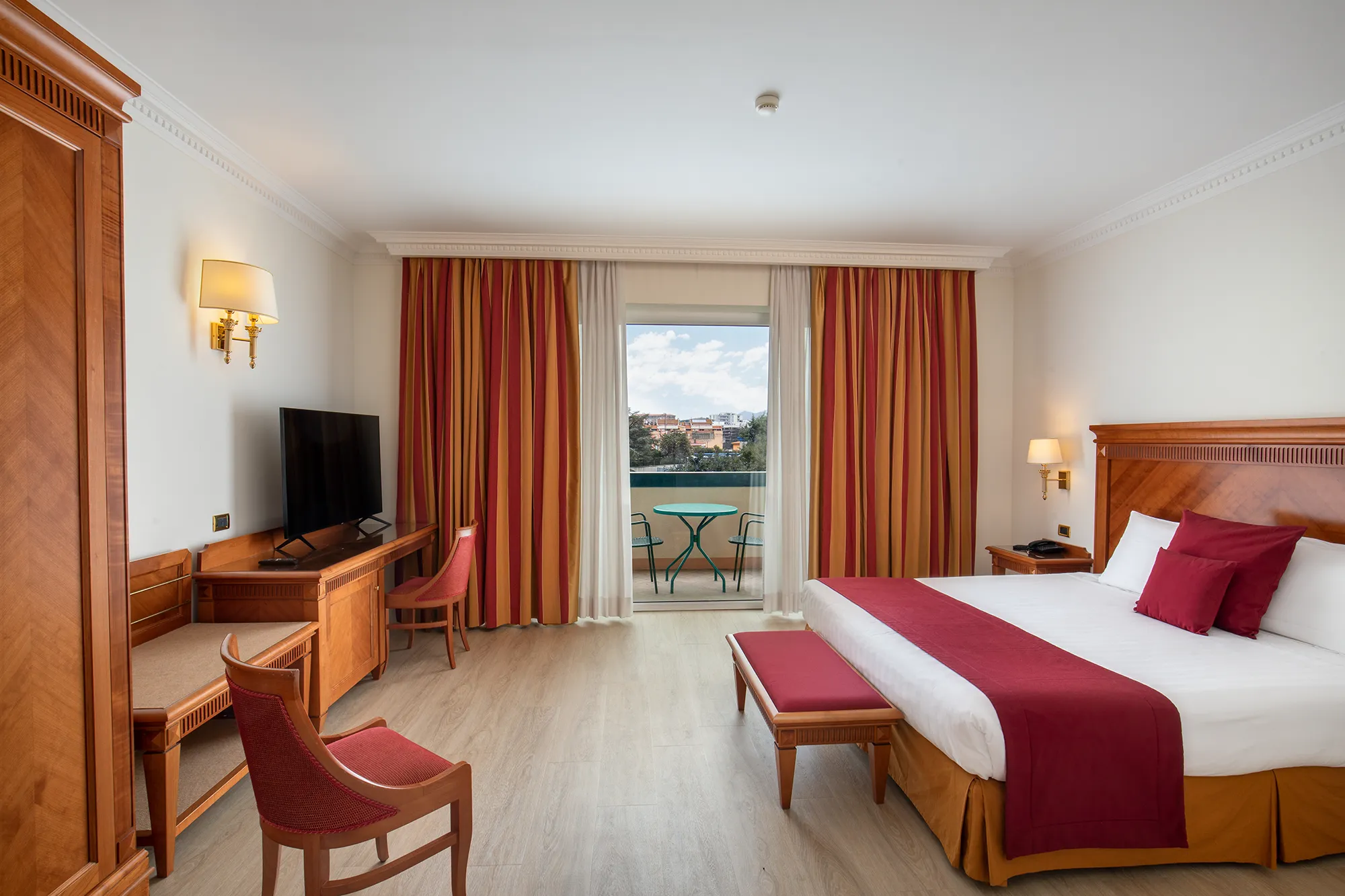 Elegant furnishings in natural colors, spacious room, sophisticated and original ambiance characterize the deluxe rooms which offer also a lovely balcony with a view. In the room there is a 43’’ TV, bathrobe, slippers and body lotion.